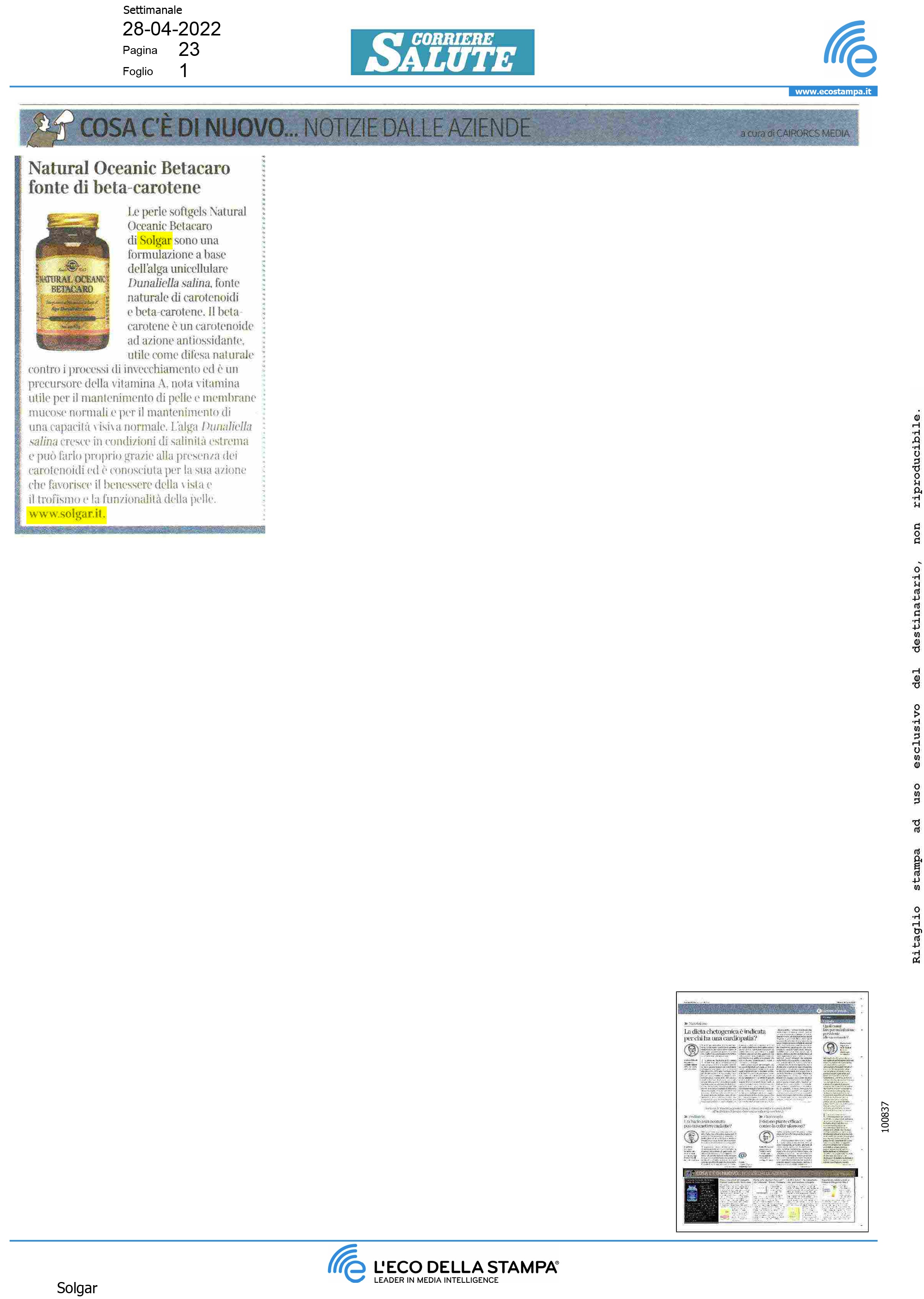 CORRIERE SALUTE 28 Aprile, 2022 natural oceanic betacaro