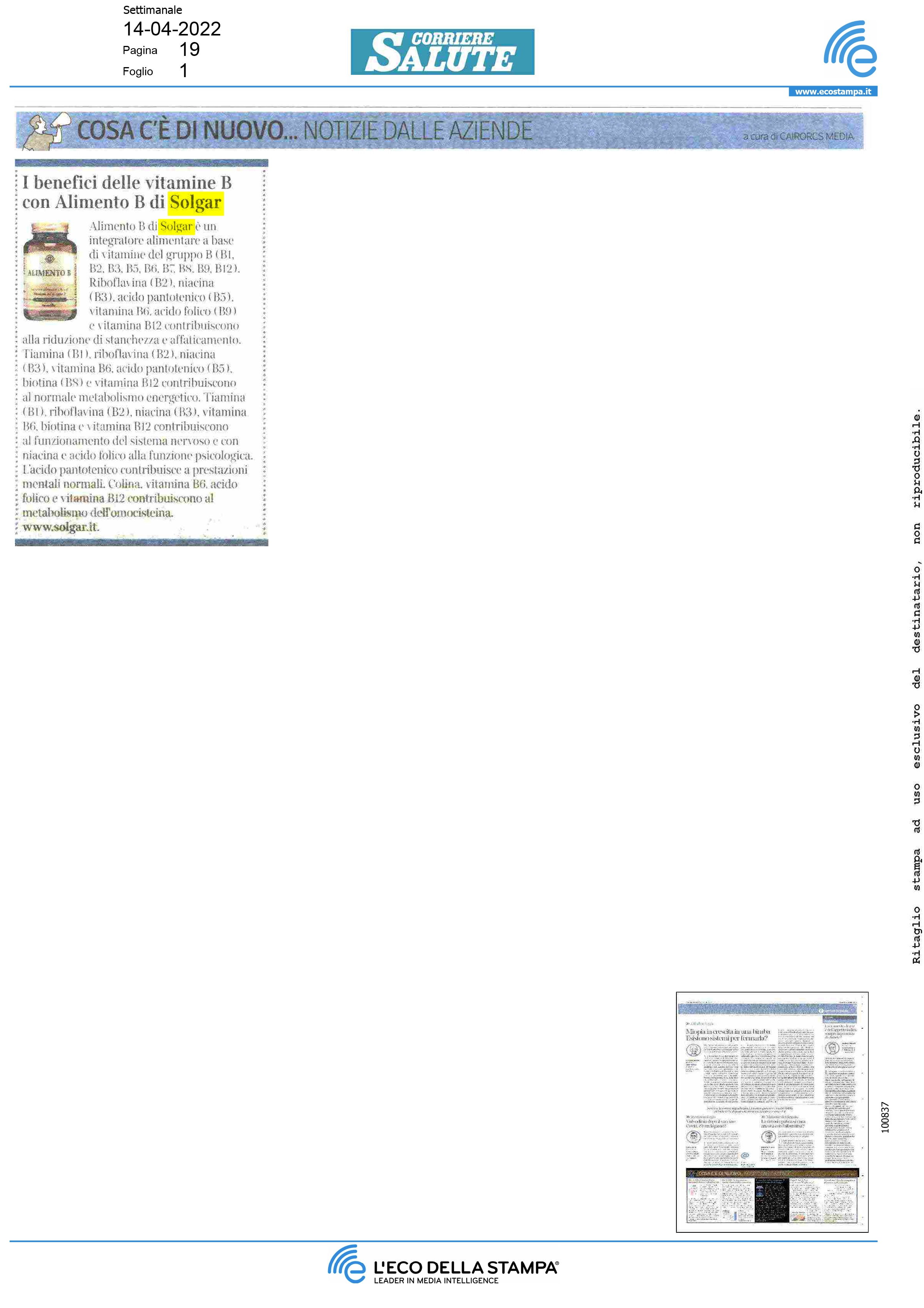 CORRIERE SALUTE 14 Aprile, 2022 alimento b