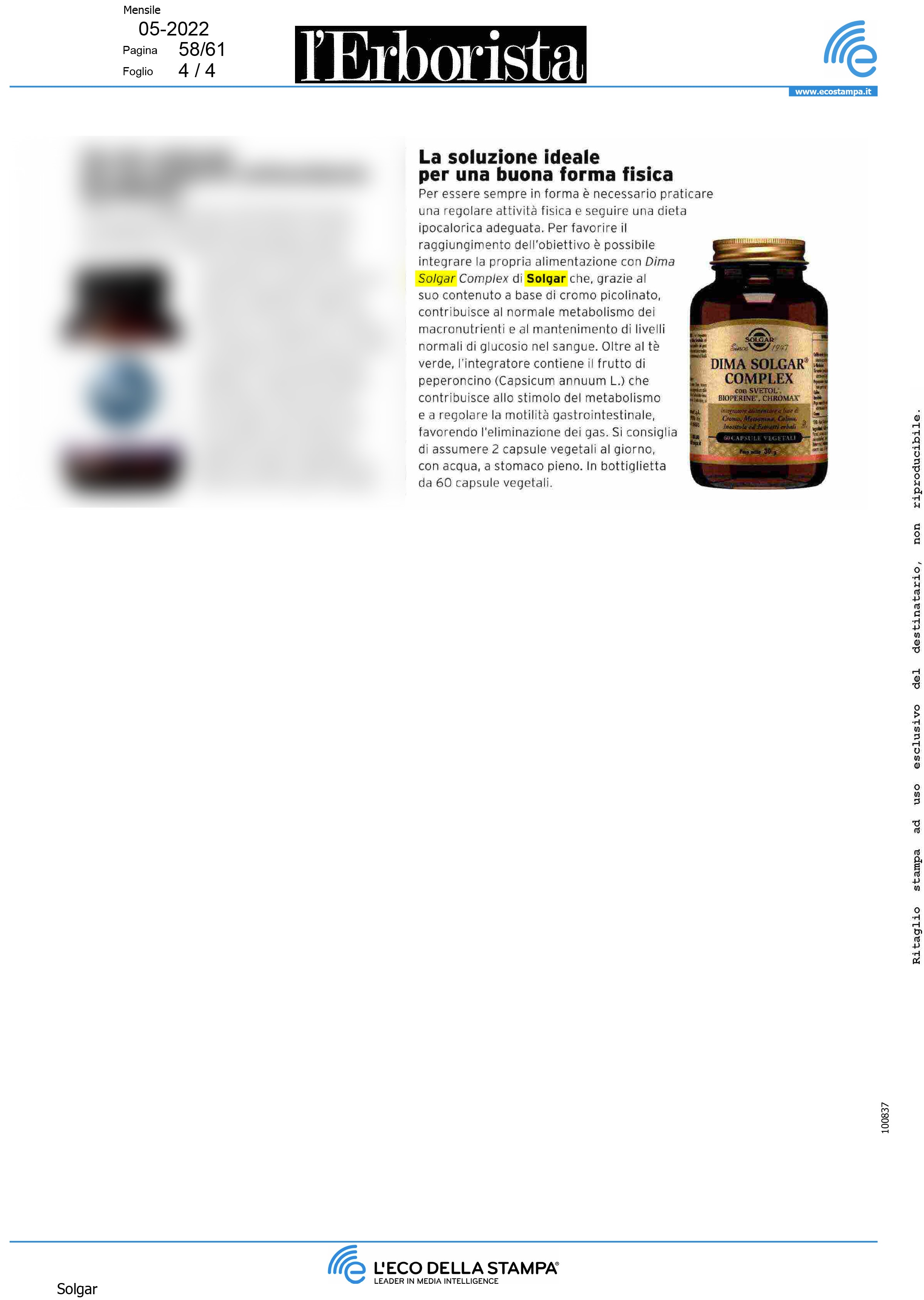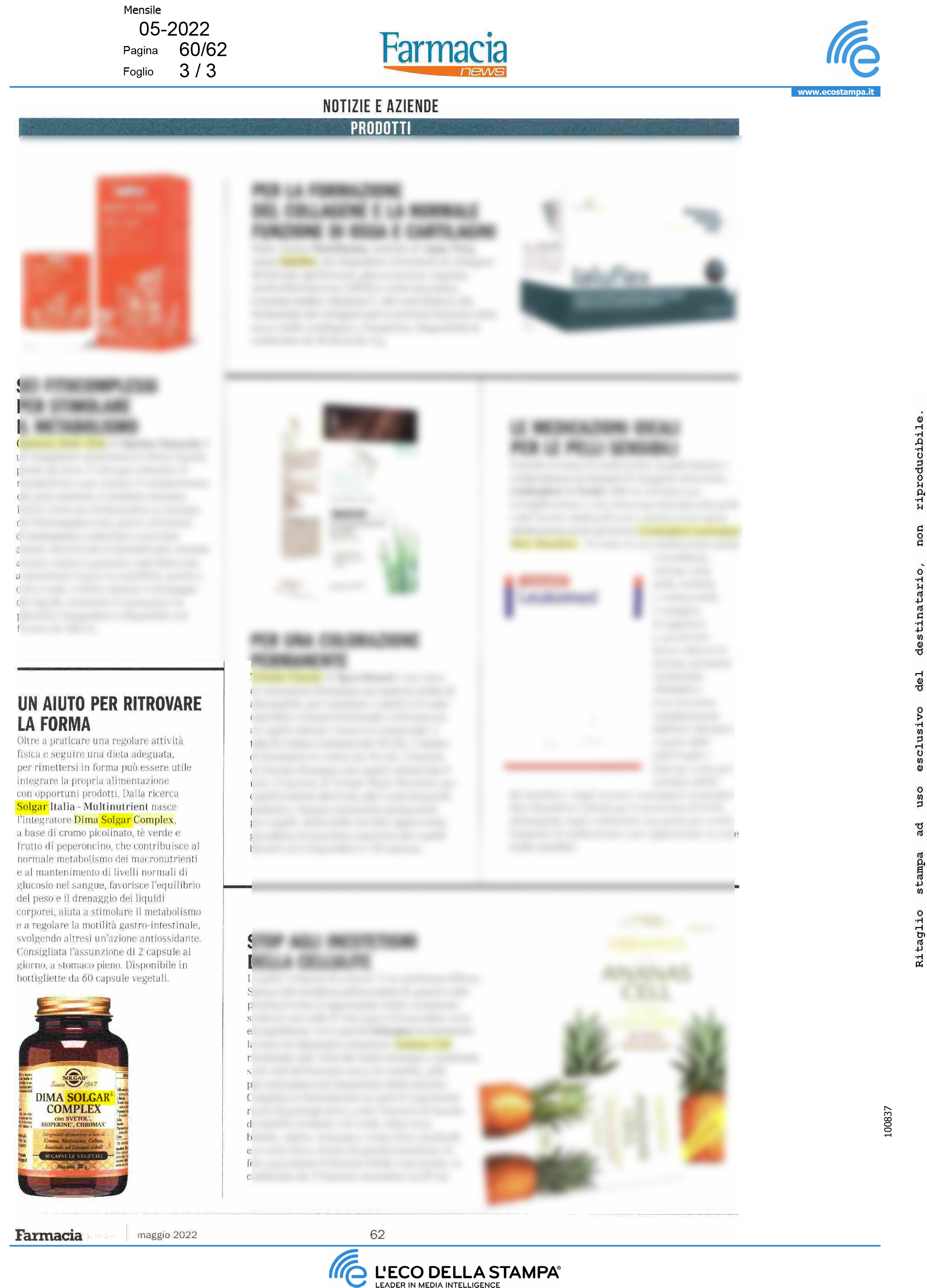 FARMACIA NEWS 14 Maggio, 2022 DIMA SOLGAR COMPLEX