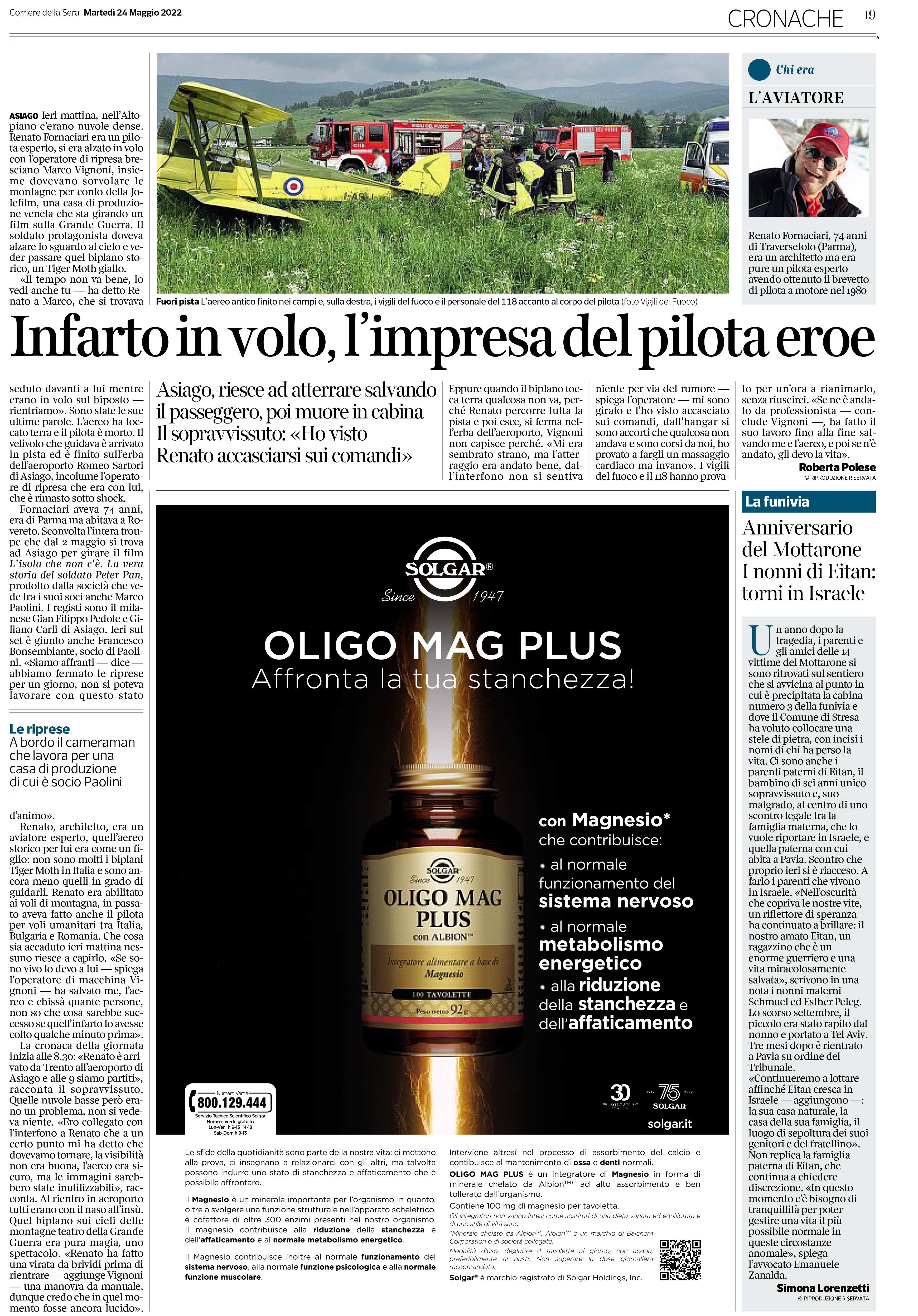 CORRIERE DELLA SERA 23 Maggio, 2022 oligo mag plus