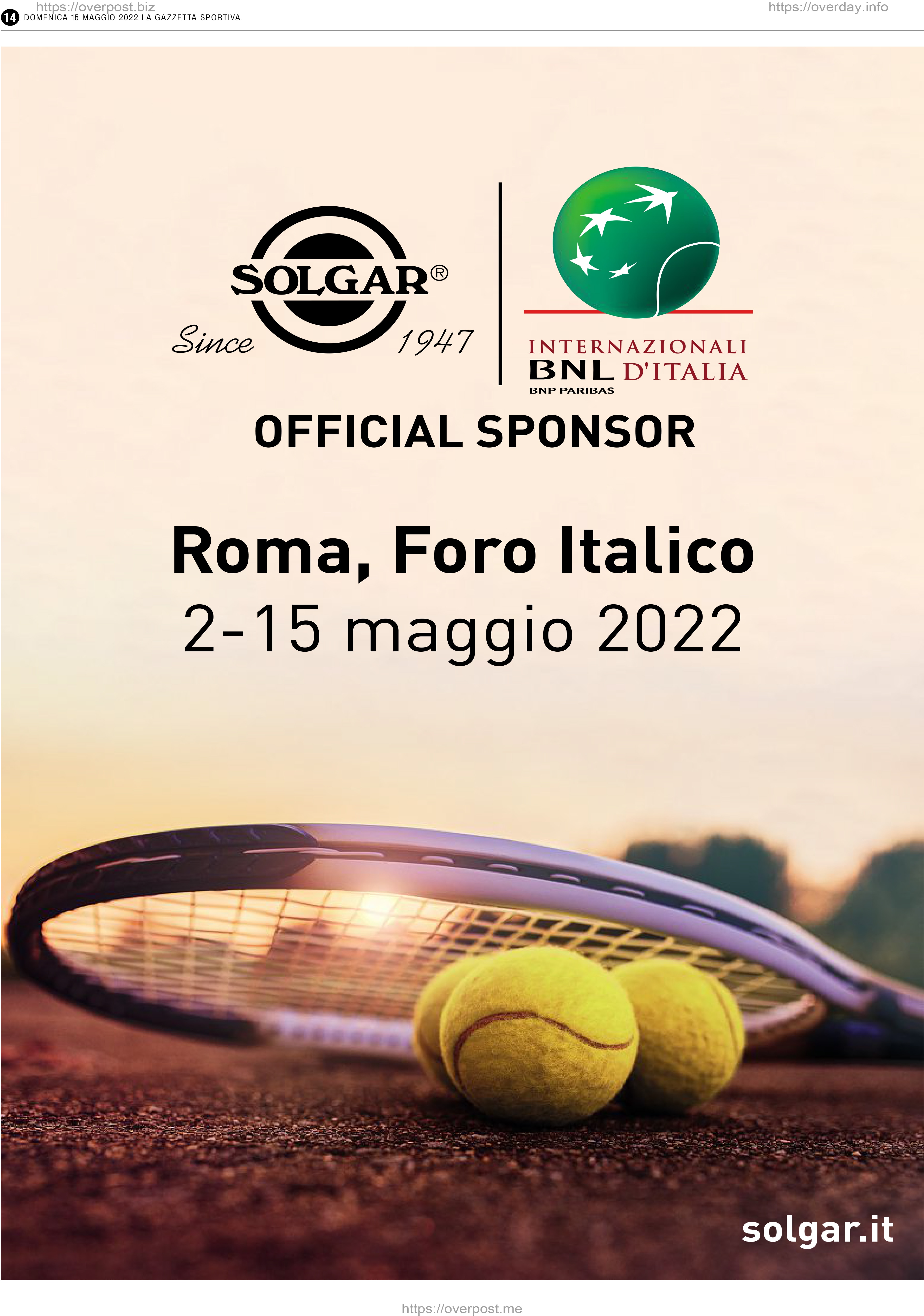 La gazzetta dello Sport 16 Maggio, 2022 BNL Internazionali