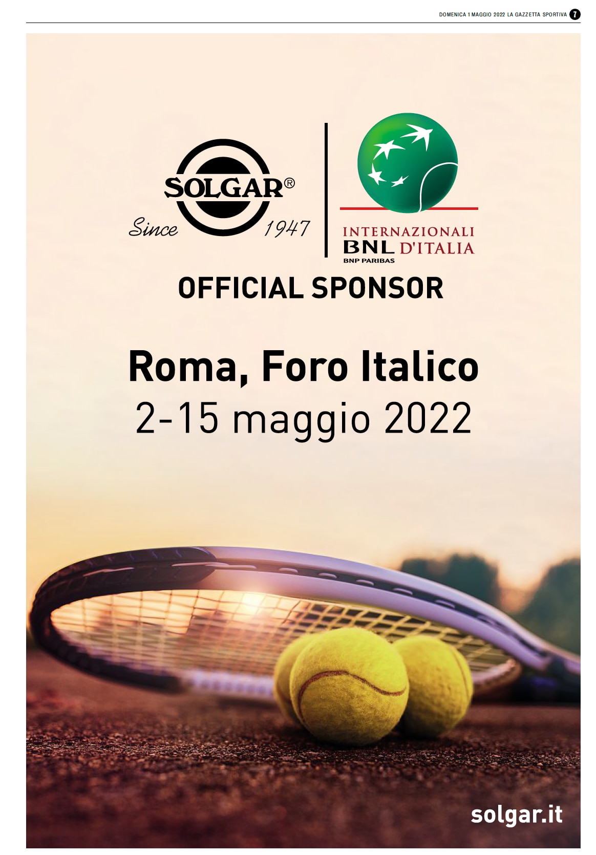 La gazzetta dello Sport 1 Maggio, 2022 BNL Internazionali